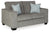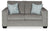 If style is the question, then this striking loveseat is the answer. Sporting clean lines and sleek track arms, the decidedly contemporary profile is enhanced with plump cushioning and a chenille-feel upholstery that's so pleasing to the touch. Sure to play well with so many color schemes, this loveseat in richly neutral alloy includes a pair of understated floral pattern pillows for fashionably fresh appeal.
